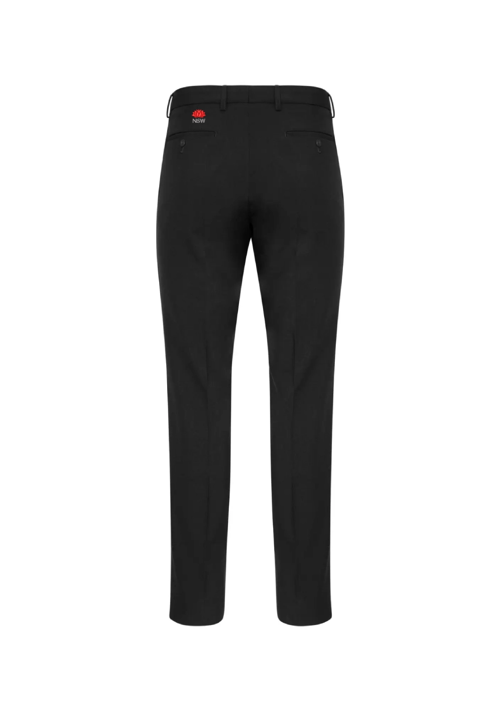 • Contemporary flat front with 2 side pockets, 1 back welt pocket